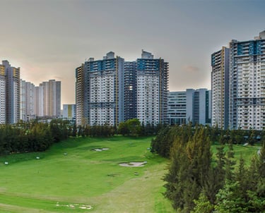 Yes, select towers feature a 9-hole mini golf course with stunning views, enhancing the living experience.